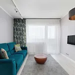 White And Blue Apartment In Szczecin With City View And Desk By Noclegi Renters